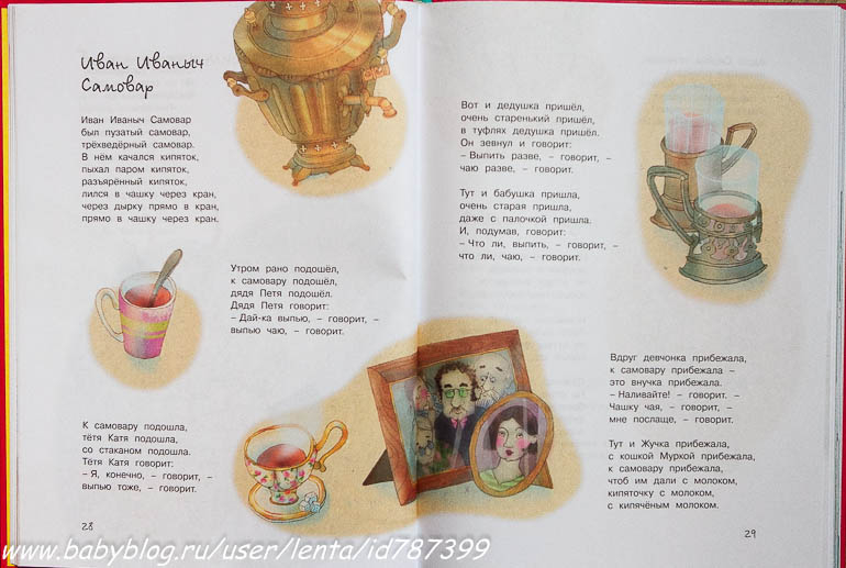 Это стихотворение есть с иллюстрациями Бугославской (очень, кстати, симпатичные рисунки, можно пролистать здесь). Но в итоге я купила целый сборник с рисунками Коровина. Поднимите руки, у кого такая была???