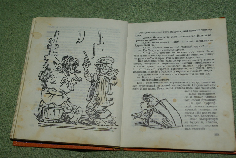 Итак, на фоне переиздания Владимира Разумневича (Два сапога-пара уже давно в продаже есть) я расскажу о букинистике и покажу. Автора иллюстраций в конце, ибо у меня книга без одного форзаца. Цвет у книги очень интересный: в детстве маму просила-почитай книгу-апельсин)))
