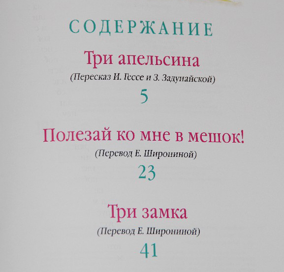 В книгу вошли три итальянские сказки "Любовь к трем апельсинам", "Три замка" и "Полезай ко мне в мешок". Иллюстрации российского художника-иллюстратора, призера многочисленных художественных конкурсов, Елены Белоусовой, на первый взгляд, сдержанные и лаконичные, тем не менее необыкновенно выразительные, точно передают дух сказок, национальный колорит и, конечно, поражают уровнем мастерства.