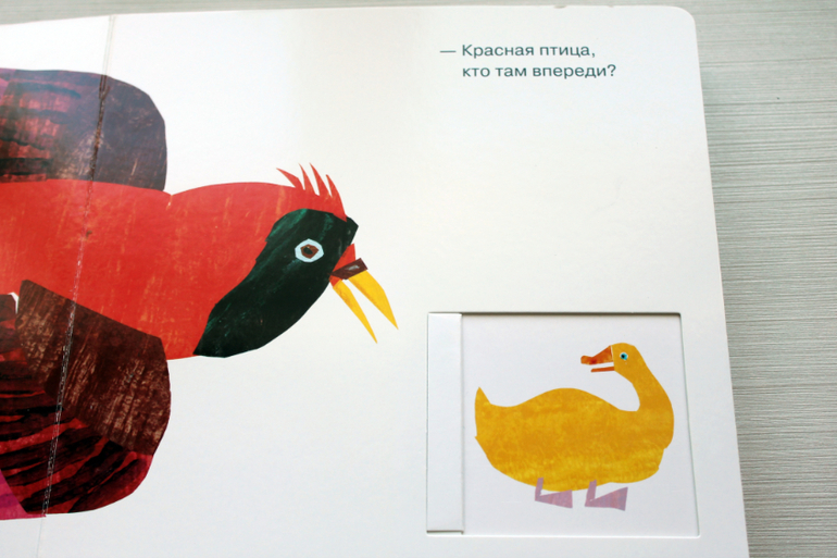 Книга интересна тем, что заглянув в окошко, вы уведите, кто нарисован на следующей страничке. Окошко очень легко отодвинуть и задвинуть обратно. Меня, конечно, смущает фиолетовый кот и синяя лошадка, но дочке очень нравится книга, особенно последняя страничка, где на нее глядят ....ДЕТИ!