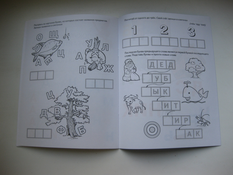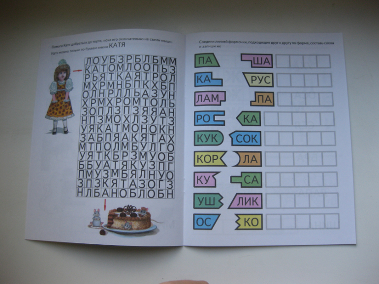 Мой сын читать умеет, но делает это с неохотой. Также путает иногда буквы, и при написании их зеркалит. Задания помогают решить вторую проблему, дают навык чтения (отдельные слова читать ему пока проще, тем более для нахождения нужной картинки), прививают любовь и интерес к языку (ребусы, превращение слов).