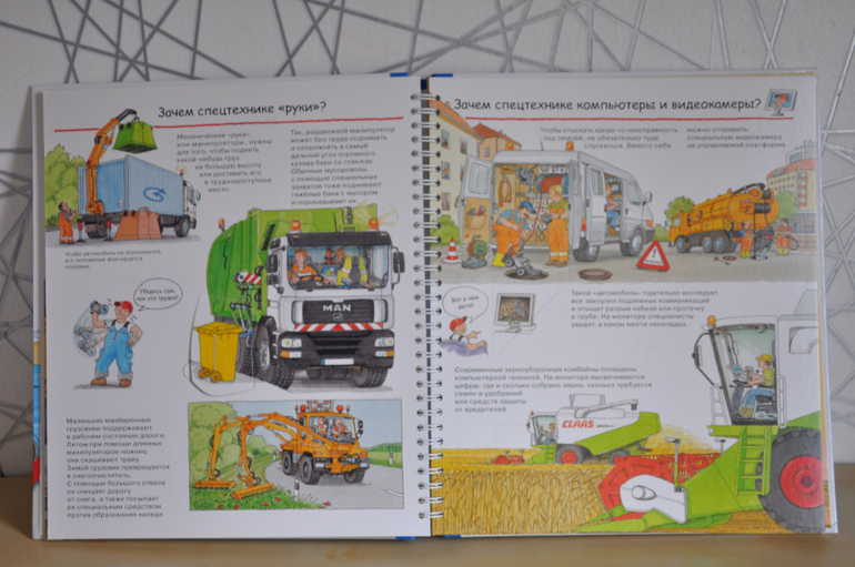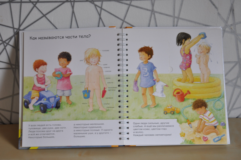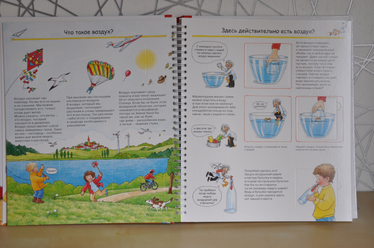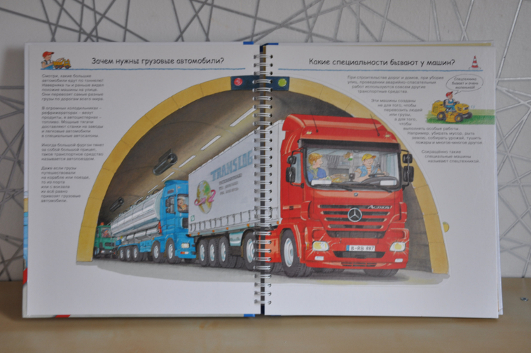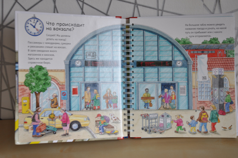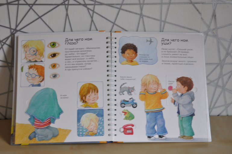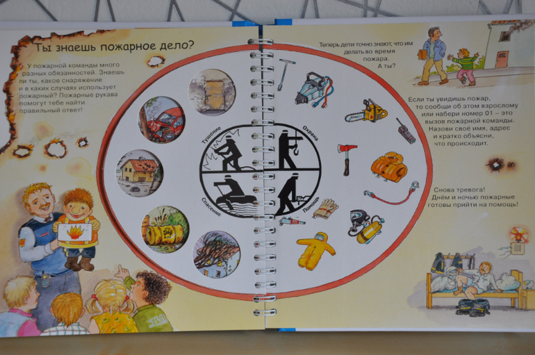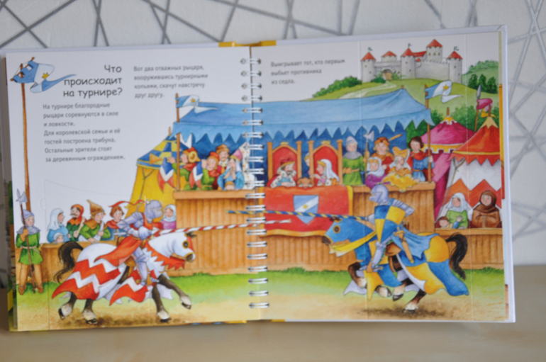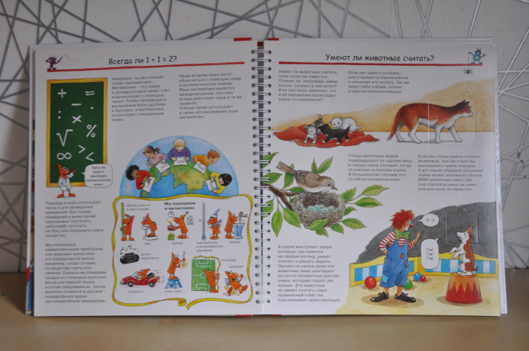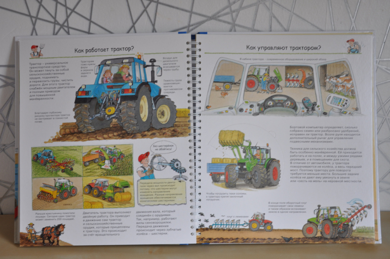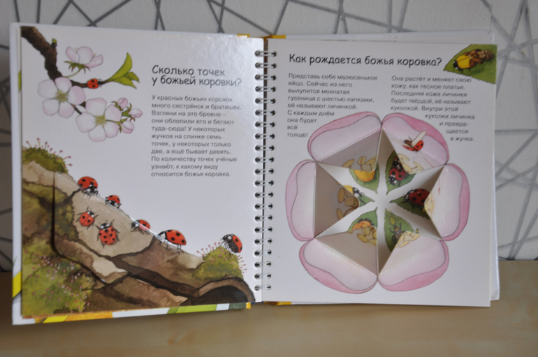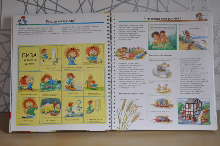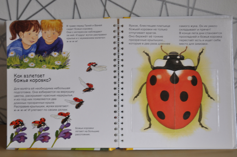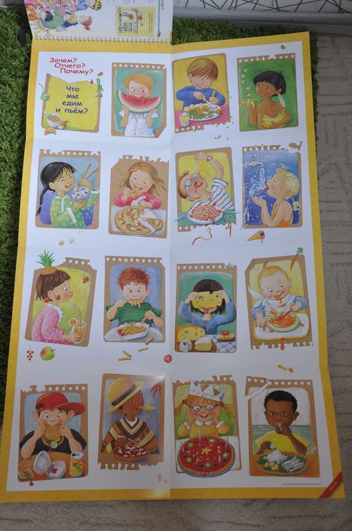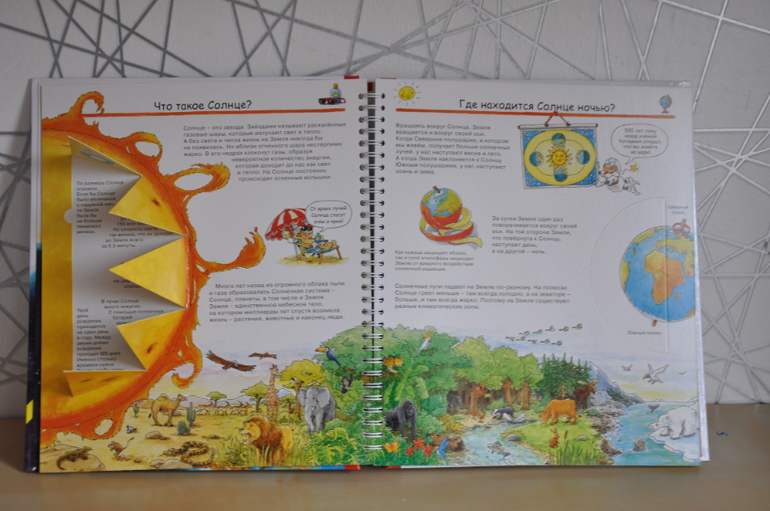 Если сравнивать с предыдущей серией, эти книги, конечно, предназначены для детей постарше. Об этом говорят и затрагиваемые темы, и рисунки, и обсуждаемые детали. Кроме того, эта серия рассчитана не только на разглядывание картинок и заглядывание в окошки, но еще на изучение познавательной информации, которой в этих книгах огромное количество, как и полагается в каждой уважающей себя энциклопедии. Но это не отменяет наличия множества игровых элементов - тех же окошек, колесиков, раскладных плакатов и т.п.
