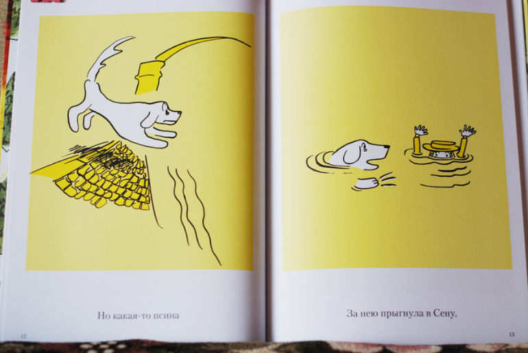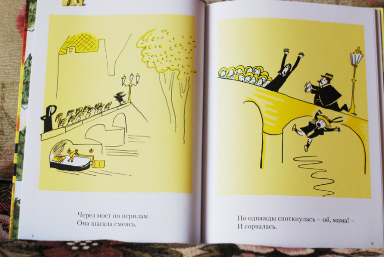 Такие вот незатейливые полу-карикатурные рисуночки и стихи в переводе Марины Бородицкой. Откровенно говоря, английская версия мне больше нравится, но пока дочке так понятнее, да и на русско стихи хороши тоже. Что не очень нравится - слишком много места - целая огромная страница - для рисунка в котором минимум деталей и нечего разглядывать. При чтении беспрерывное листание немного напрягает. На мой вкус стоило бы печатать по 2 рисунка на странице, ну да ладно :) Дочке тоже нравится. Еще мы с ней полюбили мультики про Мадлен на английском языке))
