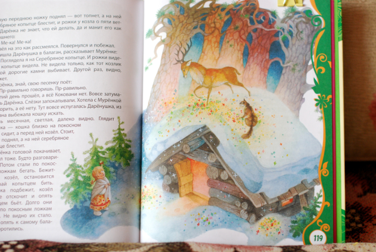 Долго искала Бажова с илл. Ольги Ионайтис в другой серии - безуспешно, все везде распродано :( Бесячные рамочки этой серии конечно вид подпортили. И контрастность у иллюстраций в книге низковата - впрочем, может, так и должно быть. Но все равно они прекрасны))) Это на 100% "мой" Бажов.