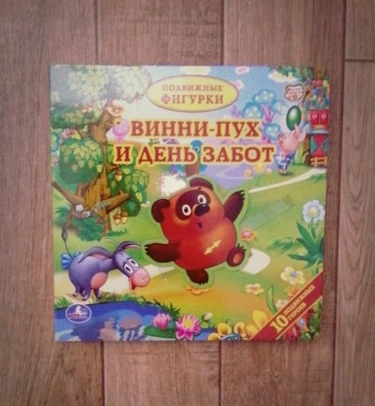 Хвастик (показываем книжные покупки)"Винни Пух и день забот". На фотографии видно, что звери передвигаются по пластинке. Большая и толстая книжка.
