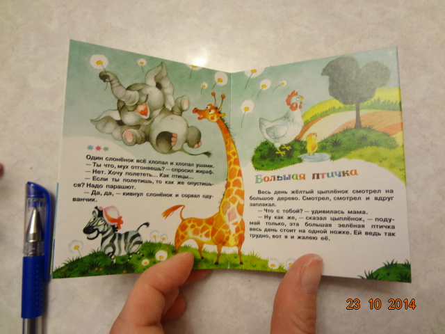 Обошлась мне всего около 50 рублей и брала из-за художника Ольги Ионайтис, но совсем не посмотрела на размер, а он буквально 6 см на 6 см. Для малышей не подойтет, мелкие картинки и текст.