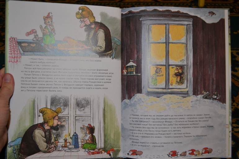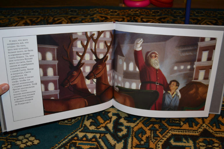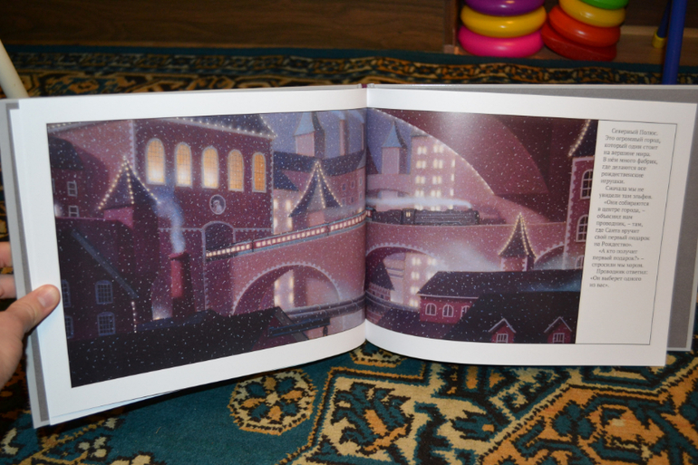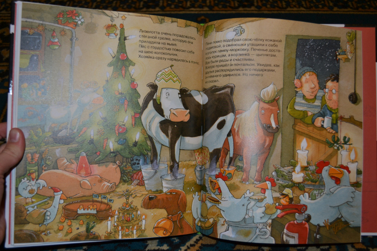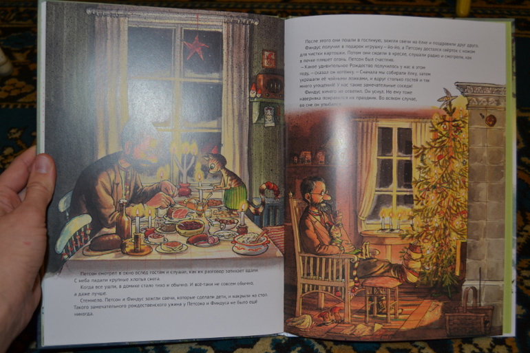 Про эту книгу тоже узнала из сообщества.Не помню, кто о ней писал, но если вы читаете этот пост, спасибо вам!)) Заказала её по той же схеме, что и автор того поста, на озоне.Там 2 варианта такой книги: одна за 50, другая за 360 рублей)) Разница, как я поняла, в годе издания.Заказала ту, что дешевле.Ждала долго, однако дождалась и пришла та, которая за 360)) То есть получила книгу в шикарном оформлении почти даром))) Отзывы о ней неоднозначные.Людям не нравится текст и тёмные иллюстрации.Иллюстрации мне понравились.Не назову их какими-то особо тёмными, если учитывать, что речь идёт о Рождественской ночи.Что касается текста - да, он как будто в кратком пересказе.Не знаю, как для деток (нам пока рано читать эту книгу всё равно), интересно ли будет читать в таком изложении, но за 50 рублей книга чудесная!Формат у неё большой, альбомный!Хранить конечно неудобно, но вот листать и рассматривать иллюстрации очень даже приятно))) А ещё мне очень понравилась последняя страничка, очень правильно там написано)))