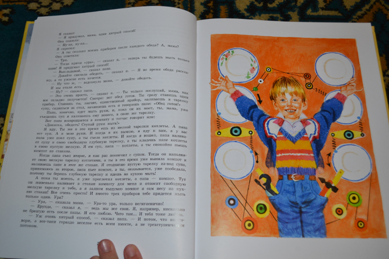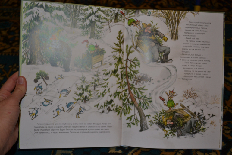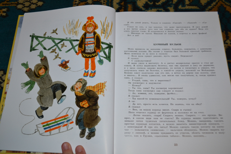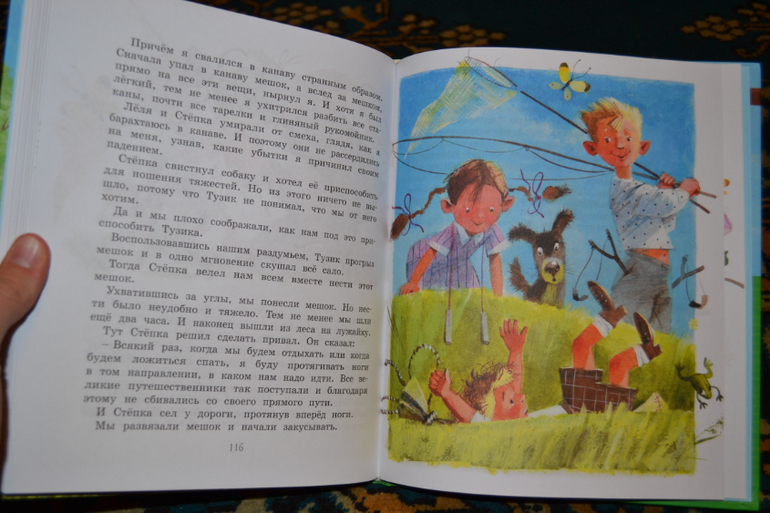 Ах, какая книга!Фото не передаёт всей красоты!Её так приятно в руках держать!Просто большое, толстенькое, тяжёленькое сокровище!Одна только обложка какая приятная!Многие писали, что меловка тут не подходит и шрифт мелковат, но мне всё понравилось.Шрифт наверное кажется мелковатым из-за большого формата книги, а меловка, на мой взгляд, тут вполне органично смотрится.Если был был офсет, книга была бы объёмнее и тяжелее наверное раза в 2...)) Иллюстрации и рассказы даже обсуждать смысла не вижу - маст хэв однозначный!Иллюстраций не так и много - в среднем одна на 3-4 разворота.Но на тот возраст, на который рассчитана книга, этого вполне достаточно)