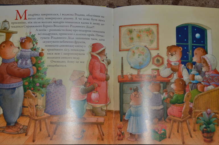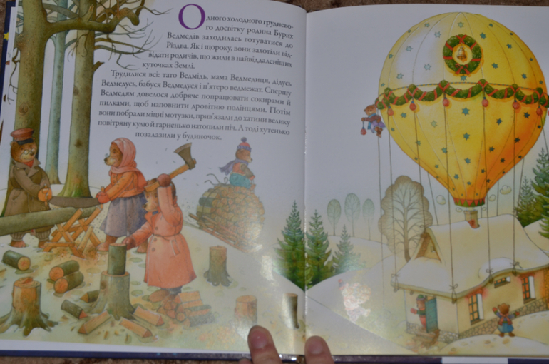 "Ведмедивка" издательство Богдан книга. Очень интересная история о том. как мишки едут в гости к своим родственникам по всему земному шару. Рисунки чудесные, бумага - плотная меловка, на фото очень бликует, при чтении все нормально. Один форзац чего стоит!!! Видела еще несколько книг этого автора (имя совершенно невыговариваемое).