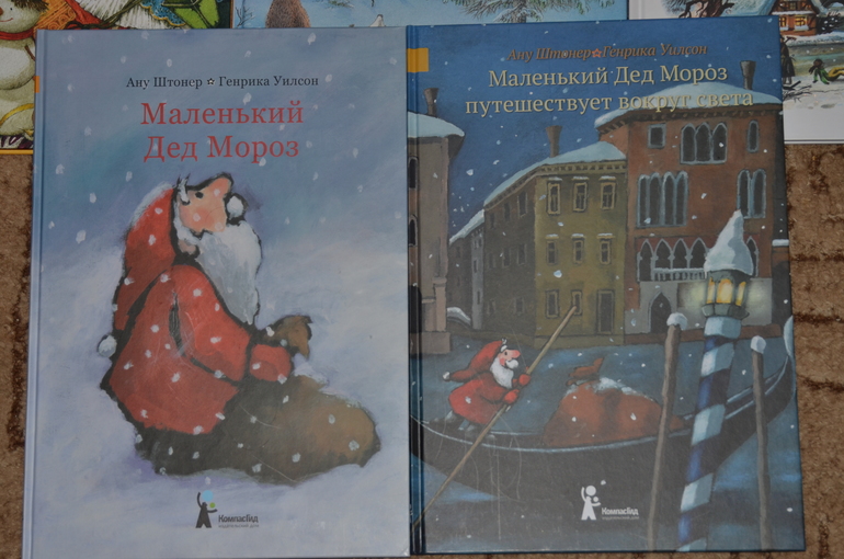 Из серии Компас-гида выбрала себе 2 книжечки. Первую - надо, конечно, ну и без путешествий мы никуда:) Рисунки своеобразные, но мне очень нравятся, особенно разворот, где Маленький Дед Мороз и сапоги большого - что это за сапоги!!!