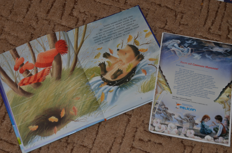 В книжке "Выпал снег" лежало еще письмо от святого Николая, симпатичный бонус. Рисунки нежные, обложка пухная, снеговик на ней в искрящемся снегу, сами истории добрые и светлые. Издательство Краина мрий, цена на нее в прошлом году была сказочная.