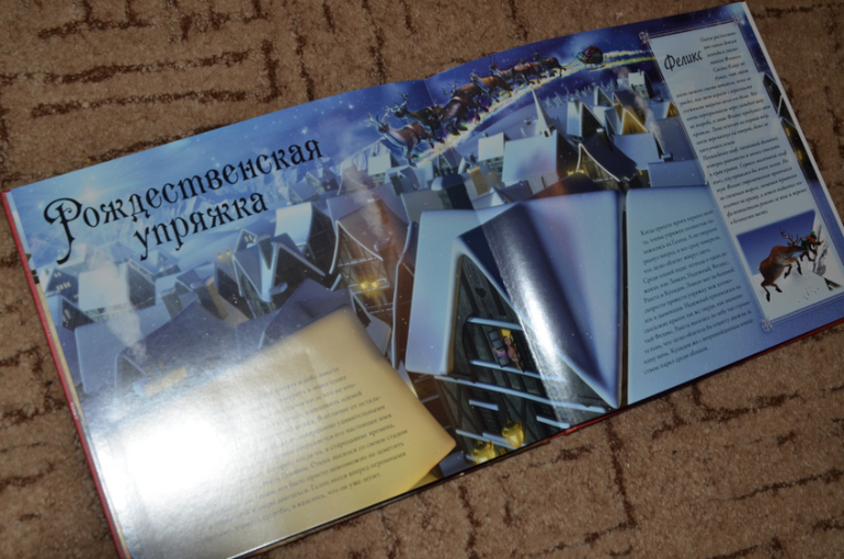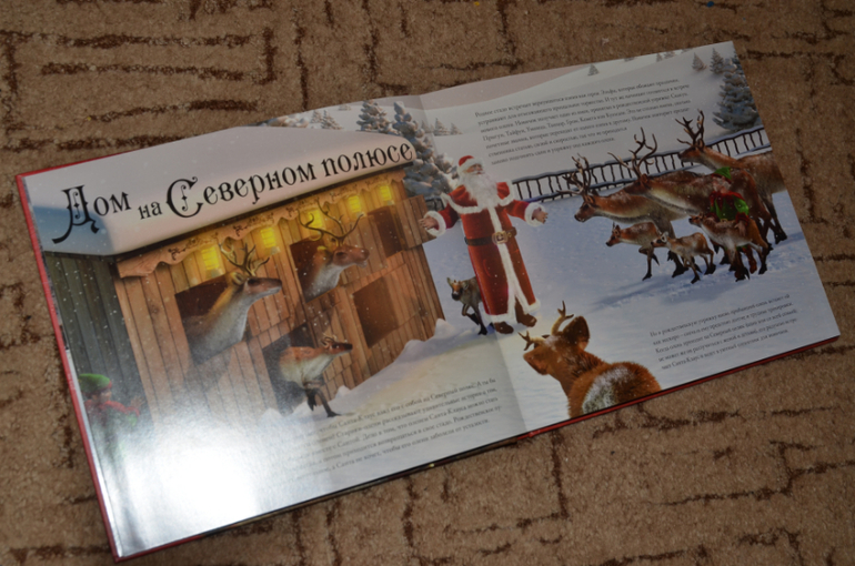 Олени Санта-Клауса - иллюстрации компьютерные, по почему-то из всей кипы зимних книг Андрюха полез именно за ней. А вообще книга интересная:) Какие олени в упряжке Санты, как их тренируют, где они живут и т.д. А в кармашке в конце еще и Диплом оленевода. Уверена, ребятенок оценит.