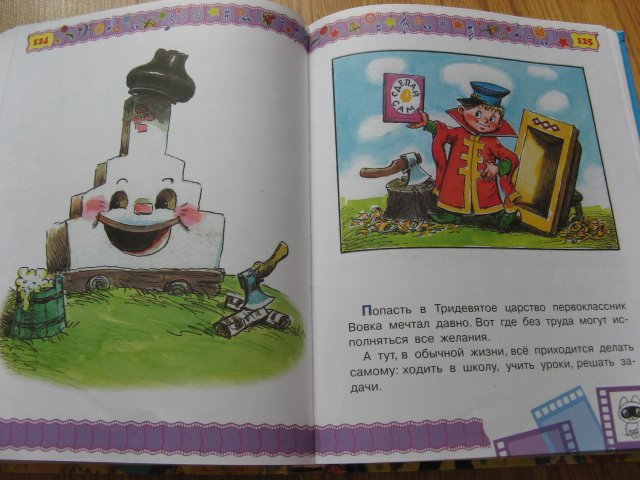 Содержание отличное. Сказки "Колобок", "Гуси-лебеди" в иллюстрациях Савченко... Сказки Сутеева (с Сутеевскими же рисунками, соответственно), и "Котенок по имени Гав", и "Вовка в Тридевятом царстве" (которого тоже нарисовал Савченко, да и сказка, сегодня редко встречающаяся), и "Петя и Красная Шапочка" (тоже с Савченко).