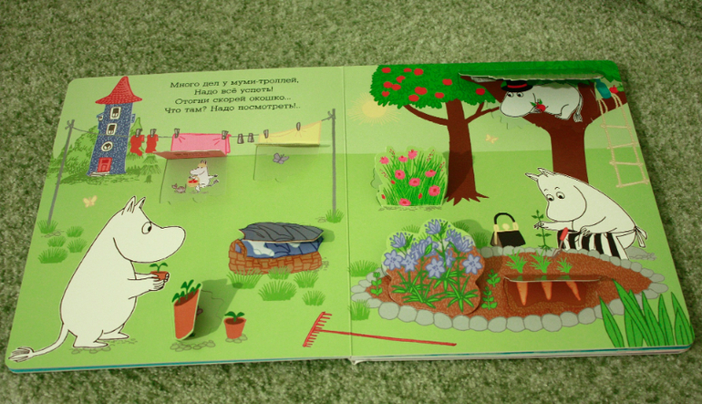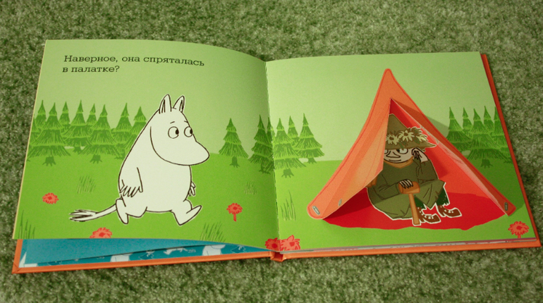 5. Муми-тролли. Веселые прятки. Тоже хит, но более хлипкий - в предыдущей книге толстый картон, эта с плотными, но не картонными страницами.