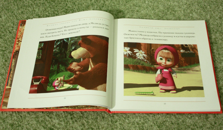 От просмотра мультиков про Машу отказались - уж больно плохо себя вести начинает и наша дочка, а вот книжки вполне можно читать).