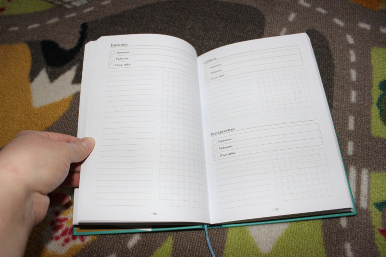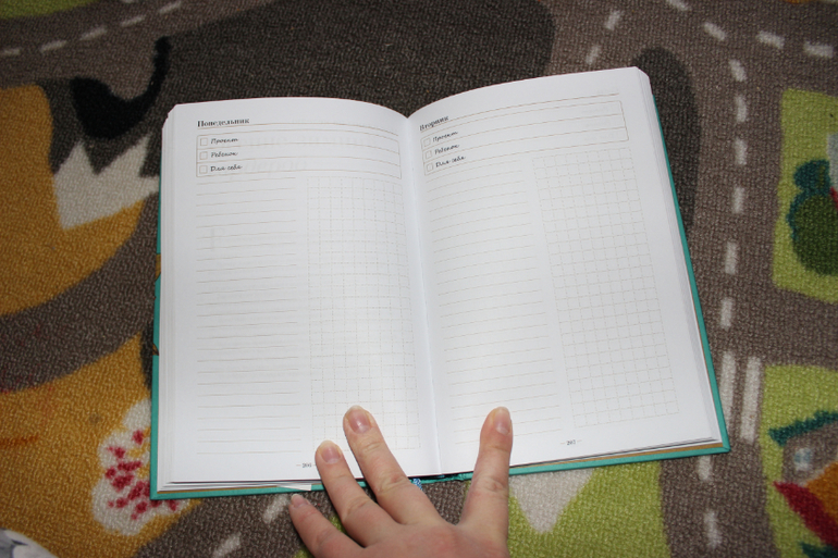 В ежедневник планирую записывать план занятий (как только он у нас с Костей устаканится), ну и какие-то вещи, которые уже не помещаются в моей беспокойной голове
