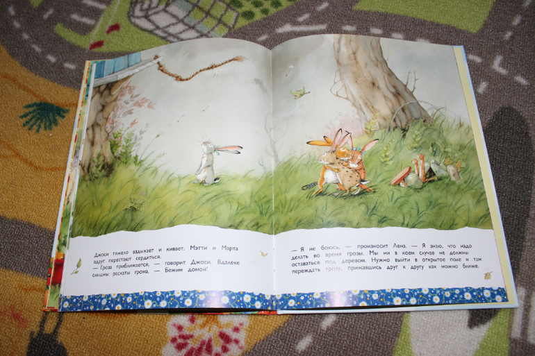 Совершенно очаровательные зайчики в этой книге. Трогательная история, про зайчика Джоси, который поссорился со своими сестрами. Но когда началась гроза, он поспешил к ним на помощь.