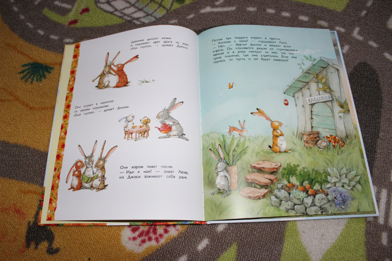 Мы очень люим зайчиков. И я как только вижу книгу с зайцами, сразу покупаю. Иллюстрации мне очень нравятся.