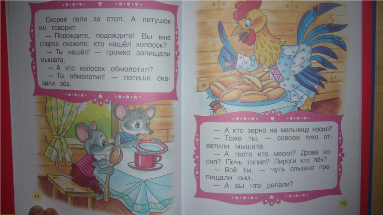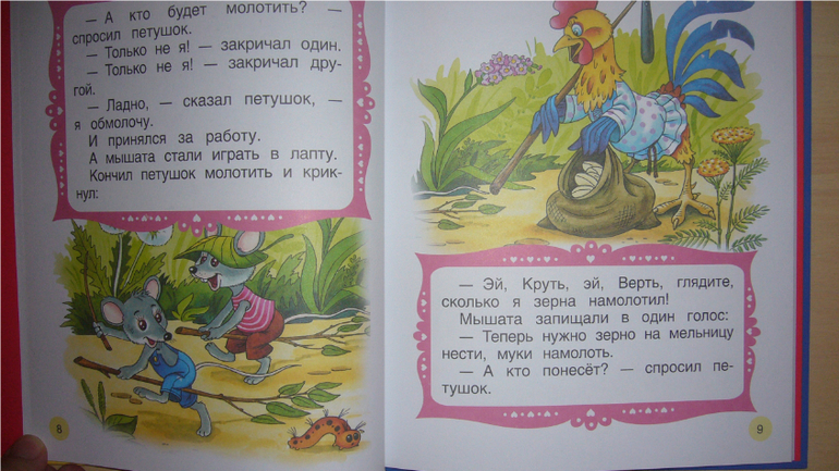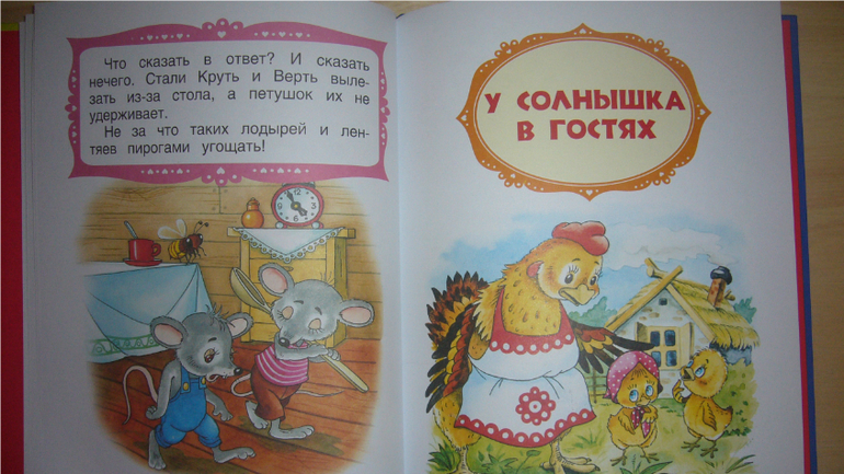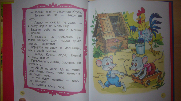 Часто в течении дня он ее цитирует, а членам нашей семьи даже роли распределил. Мы с ним, значит, мышата Круть и Верть, а папа у нас, петушок голосистое горлышко))))