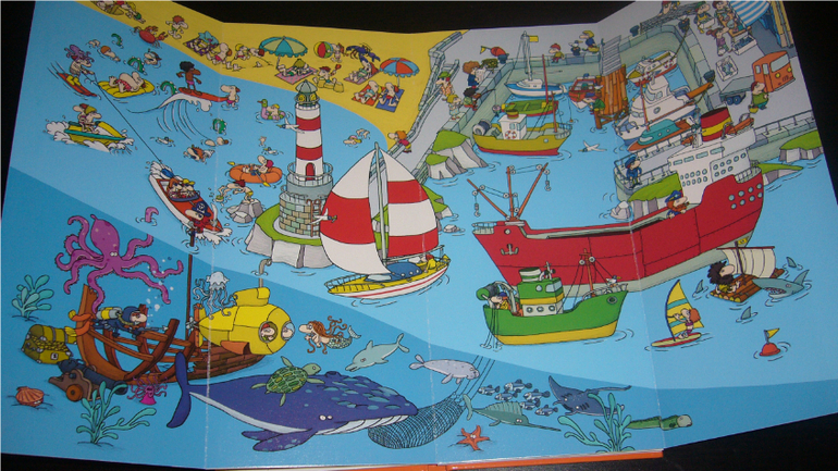 Просит меня довольно часто ее достать, и на каждом развороте требует: " Тут все показать!". Это значит, что я должна спрашивать его, где что находится, а он находит и показывает мне. Получилась у нас книжка для рассматриваний)