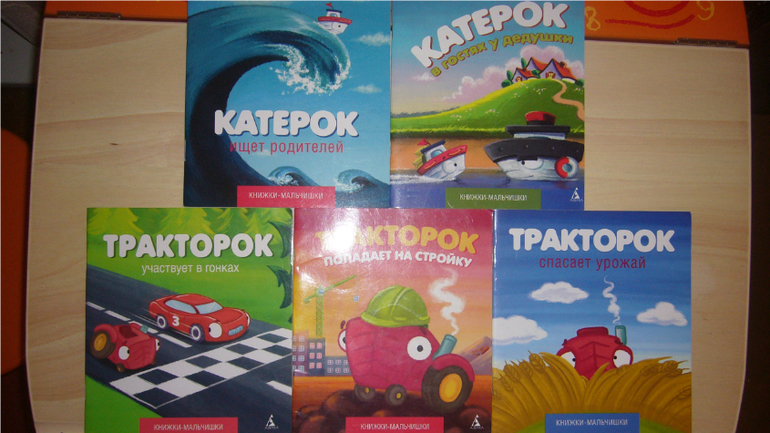 У нас собрана почти вся серия, но пока выбор сына пал исключительно на истории про тракторок. И я очень рада, что в этом месяце сын полюбил еще две истории про катерок. Вообщем, читали мы их в этом месяце часто, и по многу раз подряд.