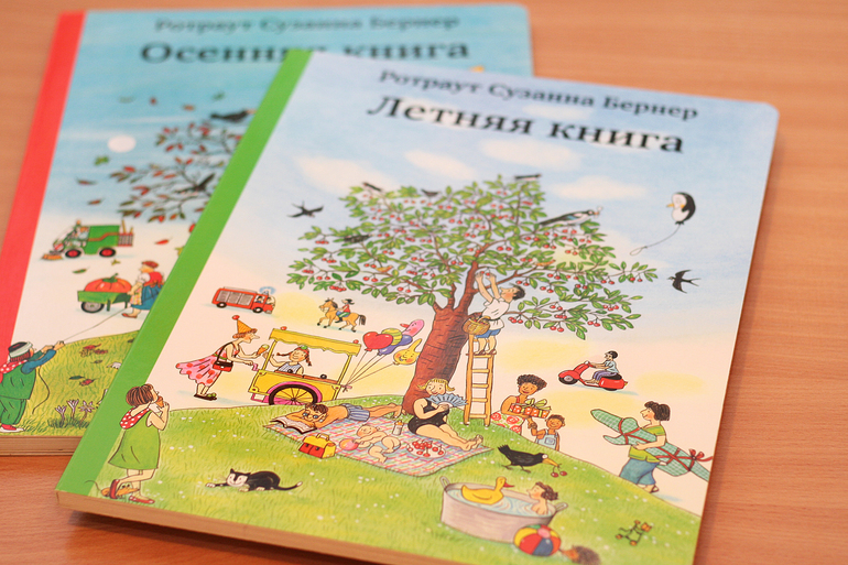 "Что бы не случилось" и "Знаешь, как я тебя люблю" еще не тестировала, т.к. только что подарила. Из остальных ребенок выделил "Хочу к маме", опять таки потому, что есть мама, папа и малыш. "С добрым утром, Карлхен!" мне не понравилось содержание, вернее то, как его неприлично растянули на много-много страниц. На мой взгляд не хватает динамики. Или может я ее не правильно читаю? У Бернер к каждой книге есть инструкция, а я как то по наитию, всё сама... вот и гляделки нам не запали в душу. Была только осенняя, а теперь появилась и летняя.