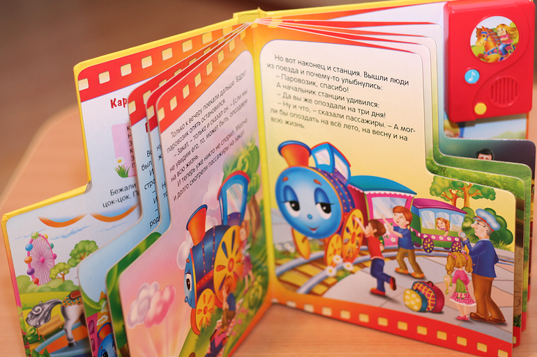 А после того, как мультфильм "Марусина карусель" стала на многие месяцы хитом у нашей крохи, то сомнений не осталось брать/не брать. Так же в этой книге есть Паровозик из Ромашково, милый и трогательный рассказ из моего детства. Текст в свободном изложении, профессионально озвученный, с музыкальными вставками - без претензий.