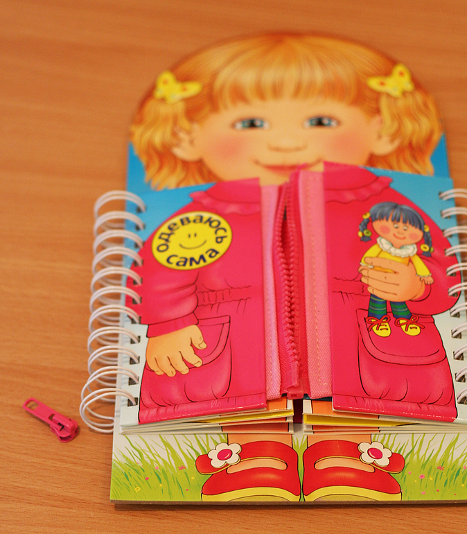 Книга на первый взгляд интересная, но нам рановато в нее играть. Из всех замочков умеем только липучки отдирать. Бегунок от замочка в первый же день отлетел. Пока отложила.