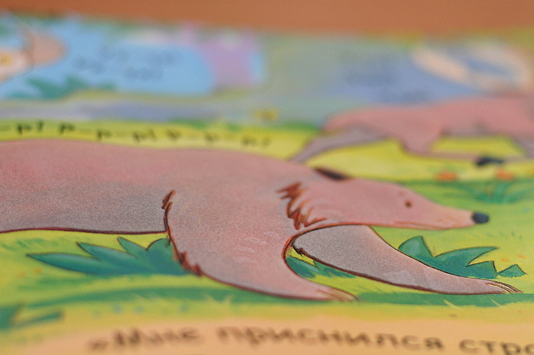 Веселый зоопарк стал моей палочкой-выручалочкой. Если ну очень хочется с утра подремать в кровати, то с ночи кладу рядом со своей подушкой эту книжку. С утра карапузик забирается ко мне и ... о чудо! лежит сокровище ( не я)! Ребенок забыл за чем бежал, а в моем расположении еще 20 минут безмятежного сна под задорные стихи про животных. Некоторые до того смешные, что волей не волей улыбаюсь сквозь дремоту. Вот это мое любимое: