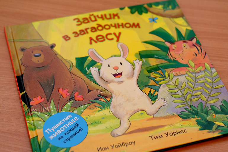 Зайчик в загадочном лесу хорошая книжка, но мы с ней опоздали. Тактильные занятия остались в прошлом. А в остальном - очень необычная по содержанию и исполнению книжка.
