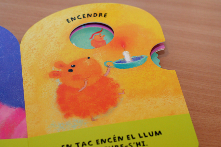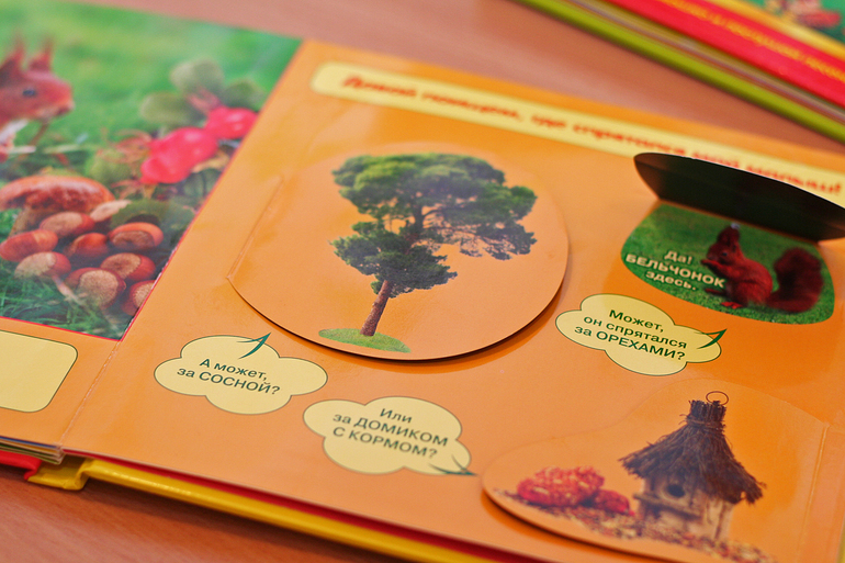 Эту книжку взяла, как пособие по развитию мелкой моторики. Крутишь колесики и ищешь похожую картинку.