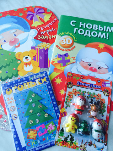 Ну, и новогоднее: наклейки, поделки, аппликации, ластики