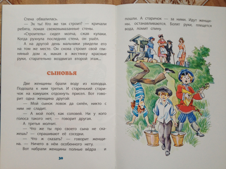 А вот и моя найденная и изрядно потрепанная книжечка) Ее мы с Ваней тоже почитали, по крайней мере, те сказки, что уцелели. Ваня задал мне вопрос от которого мне стало даже немного стыдно: «Мама, а ты что рвала книжки и рисовала в них?» Пришлось сознаться, что была маленькая и вот так неаккуратно обращалась с книгой. На что Ваня мне выдал следующее: «Ничего, мы заклеим, а ты больше так не делай!» Я буду очень стараться)![]()