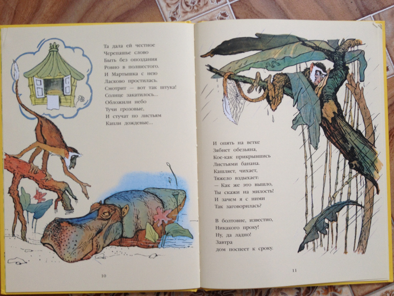 А вот следующие книги мы читали как раз по несколько раз. «Мартышкино завтра»замечательная книга, замечательное стихотворение, просто читаешь и отдыхаешь. Незадачливая мартышка очень приглянулась Ване, он все время ждал, что мартышка все-таки соберется и построит себе дом. Вот сколько раз читали, столько раз Ваня надеялся, что это все-таки произойдет.