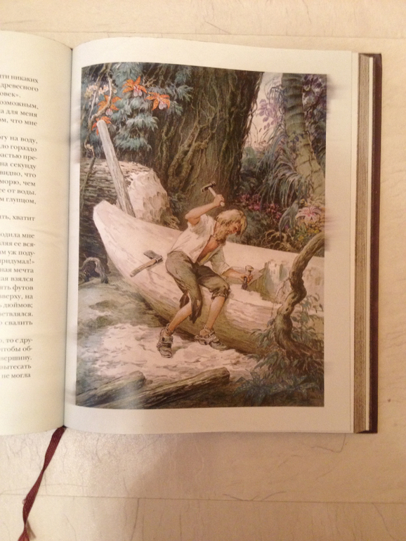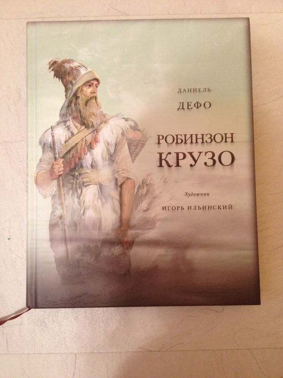 И в конце моего поста очень хотелось бы написать еще об одной книге, которую мы не читали, так как еще очень для нее рано, но все-таки я ее купила и ни капли не пожалела. А купила я ее потому, что Ваня где-то услышал про кораблекрушение и пришел ко мне с очередным вопросом. Я ему рассказала, и пообещала на ночь рассказать сказку про кораблекрушение (вспомнилась почему-то история про Робинзона Крузо). Вечером перед сном я пересказала Ване то, что помнила из книги. И Ване так понравилась эта история, что он стал просить ее рассказывать каждый вечер, а я как-то стала сомневаться, так ли я рассказываю и пообещала Ване купить книгу про Робинзона, вот таким образом она у нас и появилась. Смотрели картинки, я вспоминала содержание. Тут же последовала серия игр на тему кораблекрушения, одна из самых любимых - это поштормить с бабушкой) Чаще всего на ночь, пока мы гостили в деревне, Ване уже в постели читала бабушка. Ваня и выдумал эту замечательную игру: кровать - это корабль, сначала плывут, все спокойно, потом начинается шторм и они борются со стихией, под одеялом - это каюта, все очень шумно и весело) Заканчивается игра каждый раз тем, что их выбрасывает на остров (все та же кровать))) и они спокойно поедают всякие экзотические фрукты.
