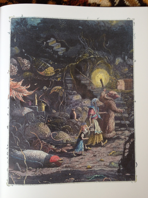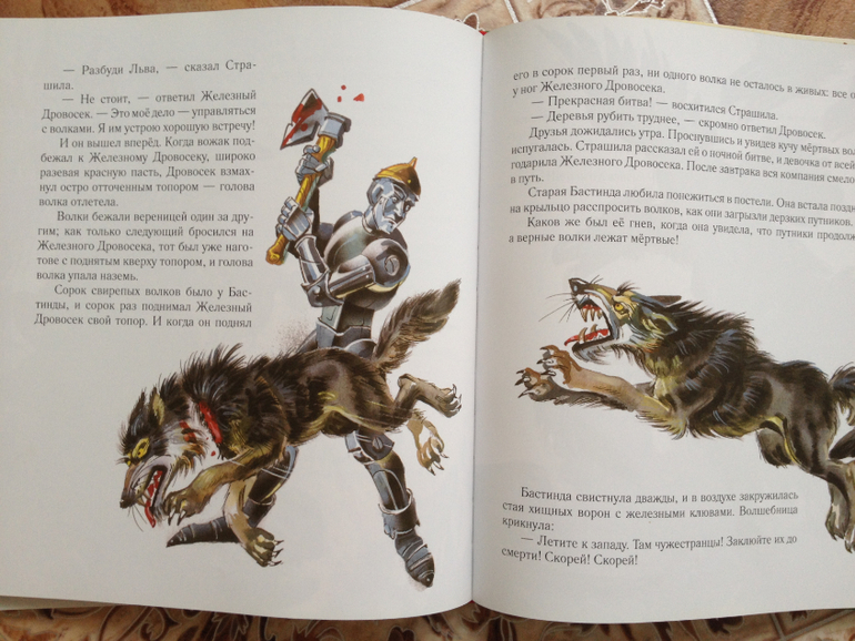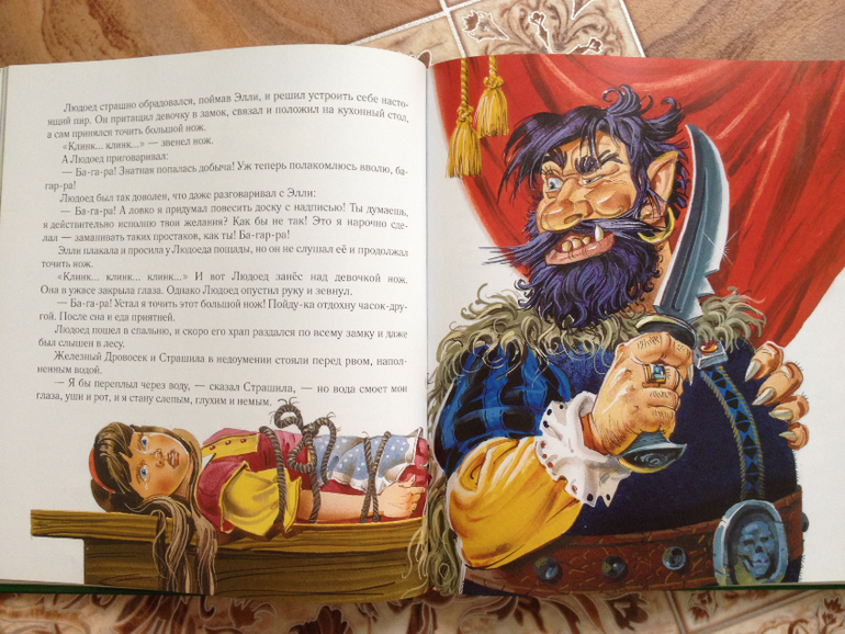 Ну и куда же мы без нашего Волшебника. Книгу, издательства Лабиринт, истертую уже до дыр, мы оставили дома. А у бабушки, нашлась книга "Волшебник Изумрудного города"издательства Эксмо, с иллюстрациями Канивца, забытая нами после новогодних праздников. Эту книгу мы не читали, так как куплена она была просто за компанию со всей серией. Но видно дошла очередь и до нее, стали читать, и иллюстрации именно в этой книге мне совсем не понравились, жестокими и местами даже страшными какими-то показались. Может я и преувеличиваю, Ваня даже и внимания не обратил, но я почему-то не захотела, чтобы он это все рассматривал, хотя до чтения этой книги прочитали из этой серии две следующие, и такого отношения к иллюстрациям не было совсем.