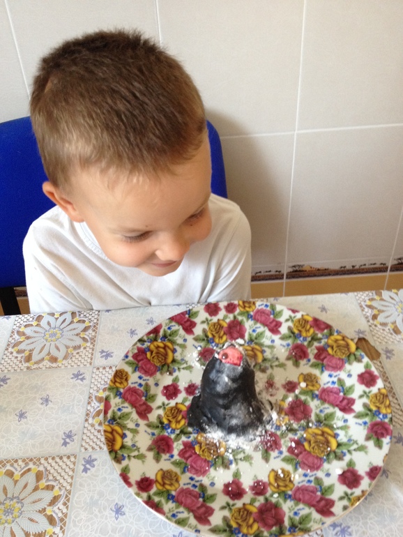 А что это у вас на тарелке? Вулкан?) Наверное, "Дюймовочка" и правда "девчачья" книга, потому что моего сына она тоже не впечатлила, даже до конца слушать не стал)