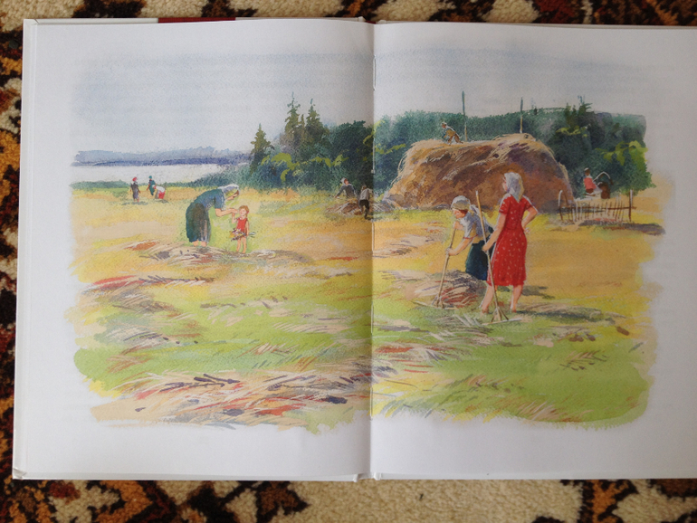 А вот книгу «Маша-растеряша» купила я еще в начале весны. Случайно увидела ее в Лабиринте, просмотрела иллюстрации, и такие приятные воспоминания на меня нахлынули связанные с детством, проведенным в деревне у бабушки. И вот тогда-то у меня и зародилась идея: купить книгу, но прочитать только летом, когда будем с детьми гостить в деревне моего детства. Вышло все именно так, как я задумала. Мы читали с Ваней, а параллельно я рассказывала, что практически все тоже самое было у меня в детстве: и сенокос, и корова, которую бабушка доила, а я ждала рядом молока, и тряпичная кукла, сшитая бабушкой, и дедушка в книге тоже напомнил мне моего дедушку, так же шутил с бабушкой и с внуками))) Просто окунулась с головой в детство, а главное Ваню мое детство заинтересовало даже больше, чем сама книга. Мы с ним ходили на луг, где бабушка с дедушкой заготавливали сено для коровы, все обсуждали, Ваня запоминал все новые слова, ему все это очень нравилось. Нашли в саду старую печку (если она правильно так называется), как на картинке в книжке один в один, на ней дедушка готовил еду поросятам, ходили в гости к соседке посмотреть печку, у нее у единственной во всей деревне печка старая сохранилась. Вот такое вот путешествие в прошлое у нас с Ваней получилось.![]()