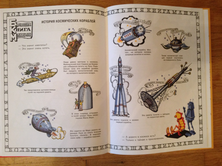 «Рам и Рум» очень яркая и складная книжка. Здесь есть все: и интересный сюжет, и интересные факты, и экскурс в историю. Никогда не видела у Вани большого интереса к технике и машинам, а тут заинтересовался, с удовольствием рассматривал страницы с историей эволюции машин, кораблей, самолетов.![]()