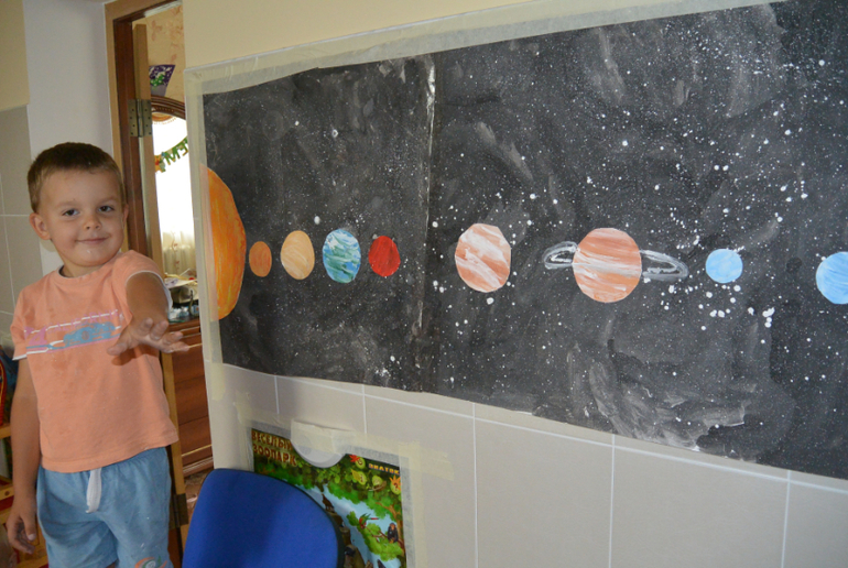Следующую книгу взяла просто на пробу, очень давно присматривалась к атласам от издательства Махаон. Книга оказалась просто замечательной. Ванька сразу обратил на нее внимание, листал, задавал просто миллион вопросов. Книгу он просто мог долго рассматривать и потом подходить что-то спрашивать. Читали в этой книге про строение Земли, потом делали макет Земли в разрезе из пластилина; потом Ваню заинтересовали вулканы, почитали и сделали опыт извержение вулкана; и читали про планеты, после сделали плакат со всеми планетами. Все идеи, как что делать, брала в интернете, в атласе про это ничего нет.