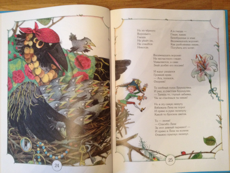 Отдельно, хочется сказать про иллюстрации: на мой взгляд, они просто идеально подходят к этому произведению. Лилипутик просто не может быть другим! Очень много разных деталей, которые просто интересно рассматривать. Герои все получились очень живыми, яркими, запоминающимися. Ваня очень подолгу мог рассматривать картинки.![]()