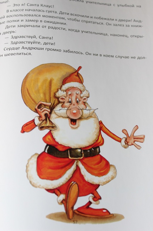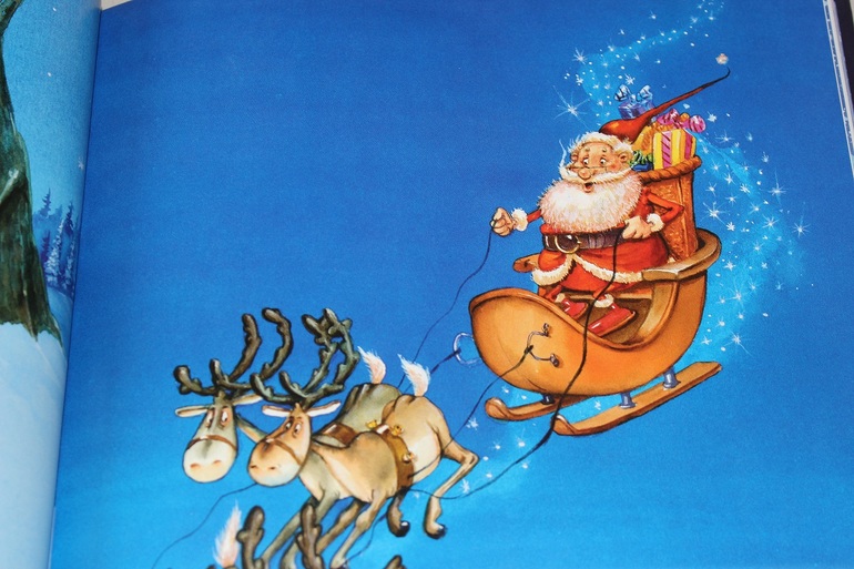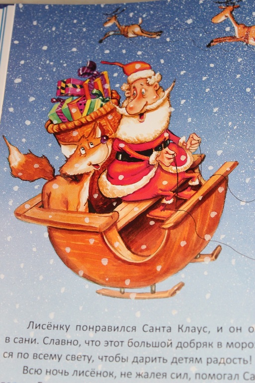 В книге всего одно стихотворение про поиск подарков лесными зверятами. Книга красивая, с клапанами, с панорамкой в виде Ёлки, но есть и минусы. Стихотворение спешит по отношению к иллюстрациям, благо оно не большое и можно декламировать. Ну и окошек могло бы быть побольше.