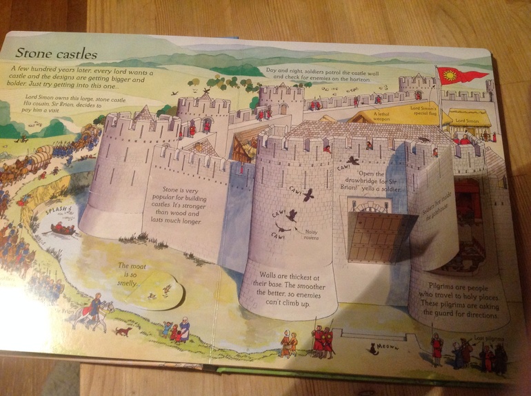 У нас с о окошками книга про Первую мировую войну — засмотрена до дыр за месяц! Теперь только и говорим, играем, смотрим про ПМВ.))) С замком тоже есть, хочу их все собрать.