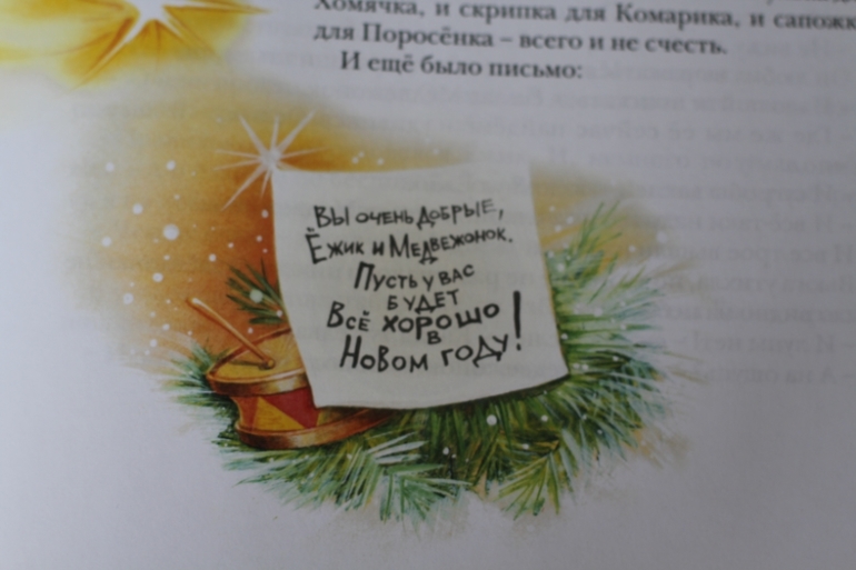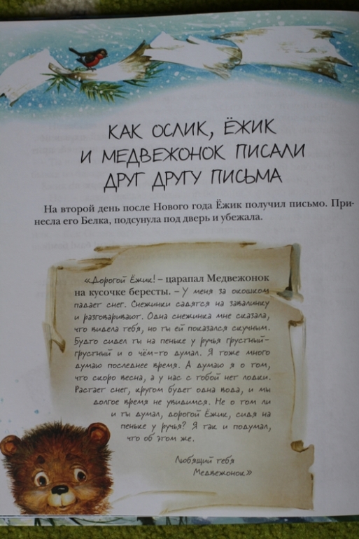 Содержание абсолютно зимнее и новогоднее :) И хотя самые мои любимые сказки в эту книгу не вошли - начинаю любить эти обрезанные иллюстрации, а точнее этих Ежика и Медвежонка :))) Ну а как их не любить, если они вызывают такие искренние и радостные улыбки на лицах моих деток?
