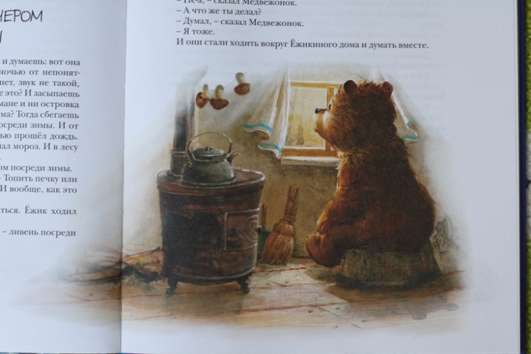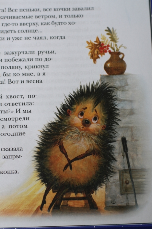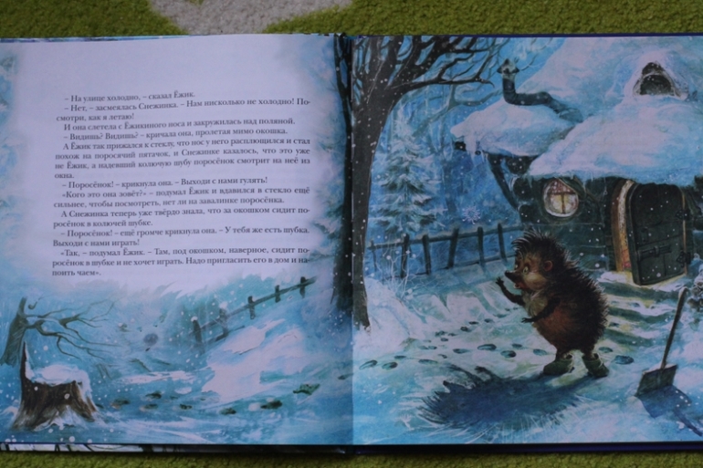 А я помню, как в прошлом году расстроилась обрезанными иллюстрациями и убрала эту книгу в шкаф... даже не в шкаф, а в коробку с книгами... И совершенно зря. Моим девочкам абсолютно все равно - обрезаны, не обрезаны. Главное, что медвежонок и ежик в этой книге добрые и хорошие! Наверстываем упущенное и читаем зимнюю книгу уже сейчас, когда первые заморозки покрывают инеем ещё не осыпавшиеся ягодки рябины :)