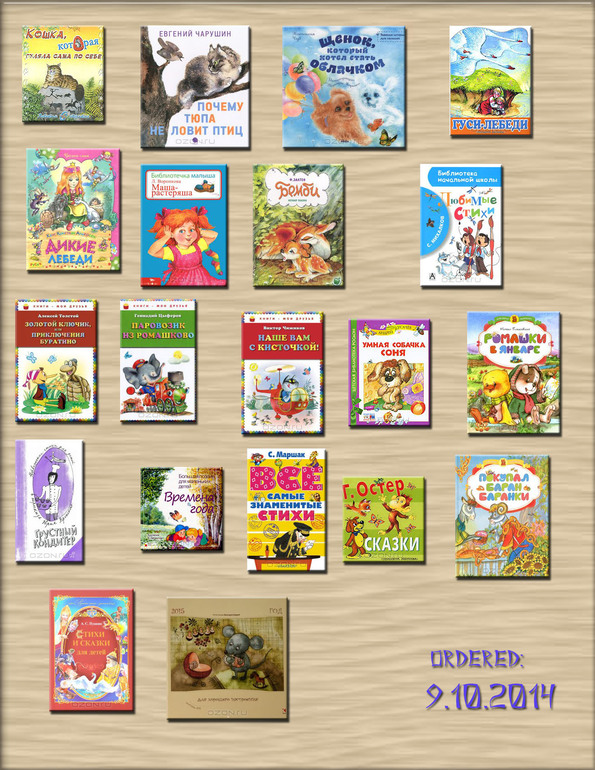 А вот единственная книга от которой я ожидала большего - меня разочаровала. "Стихи и сказки" Пушкина я специально покупала для дочки. Естественно Пушкин у нас есть, но хотелось издания с картинками и в которое бы входили не только сказки, но и хотя бы несколько стихотворений. Я выбирала между изданием, из которого было выложено в нете достаточно много иллюстраций и этим (только 2 илл. я смогла найти и мне они показались вполне неплохими),. Выбрала это , так так было больше стих. и сказок.... Иллюстрации неплохие, хотя и компьютерные, НО их очень и очень мало....