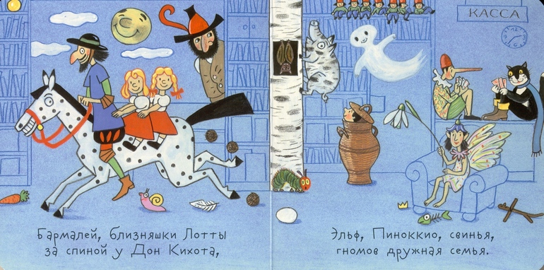 Пиноккио,Мюнхаузен, прицесса на горогине (?), черная курица (?), голодная гусеница