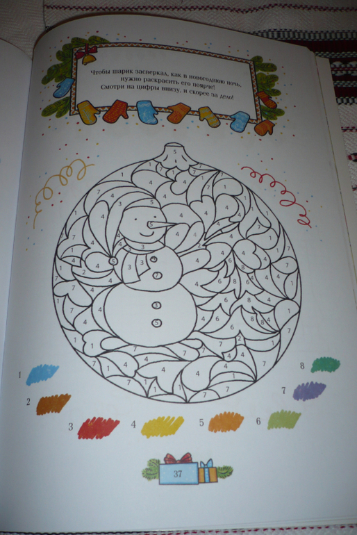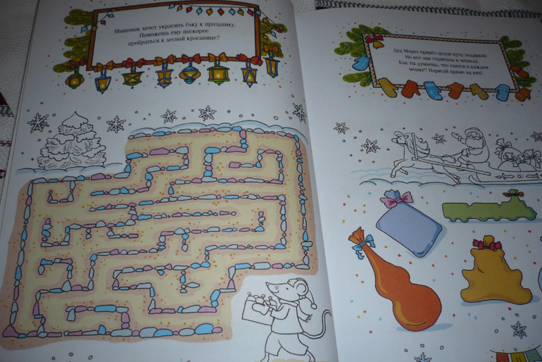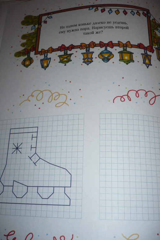 Мой сынок тоже засматривается на эту книгу, хотя некоторые задания для него еще сложноваты. Все же куплю и ему такую новогоднюю развлекалочку: рисовать он у меня очень любит.