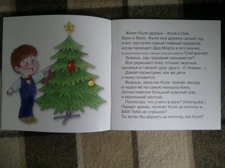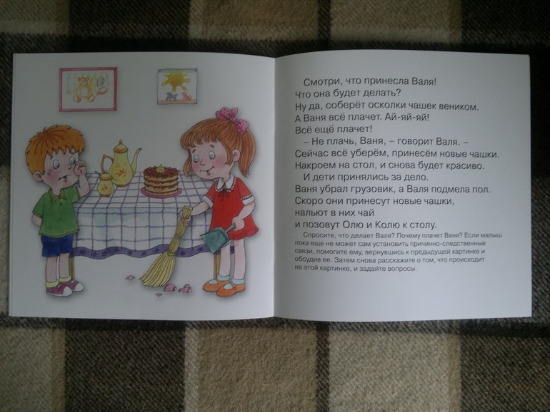 для самых маленькихИтак, книга по смыслу похожа на "Первые фразы. Начинаем Говорить", то есть картинка слева, а справа текст, как надо картинку комментировать. Текст сложнее, предложения по 7-20 слов. Я бы назвала эту серию логичным продолжением серии Начинаем говорить. Первые фразы