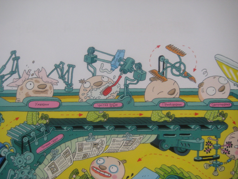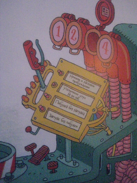 К примеру, самое первое, что привело меня в восторг, это будильно-кормильно-одевальный аппарат. Действительно, невероятно сложно с утра пробудиться, покормиться и одеться!!!!!!! А если будет такой невероятный аппарат, то нудные дела могут превратиться в безудержное веселье и радость! Смотрите сами! Я сняла небольшое видео для того, чтобы показать, как много всего в этом изобретении)